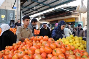 Sono riuscita a perdermi un po’ al mercato di Betlemme dove comunque dovevo raggiungerle al più presto per ripartire. Poco agio per fermarsi o prospettare deviazioni, la situazione politica, e non il tempo, non lo consentiva. Non ho inviato nessuna foto di una festa di tutta la famiglia e degli amici che si è svolta in un grande garage al suono di una balalaika, né della loro riunione al Rotary Club per cui ho dovuto comprarmi una giacca adatta al caso, né del supermercato o dei bellissimi fruttivendoli, così ricchi di verdure che si producono nelle serre in Cis-Giordania, né delle pasticcerie di Nazareth o di un emporio di spezie con centinaia di sacchi colorati e profumati.