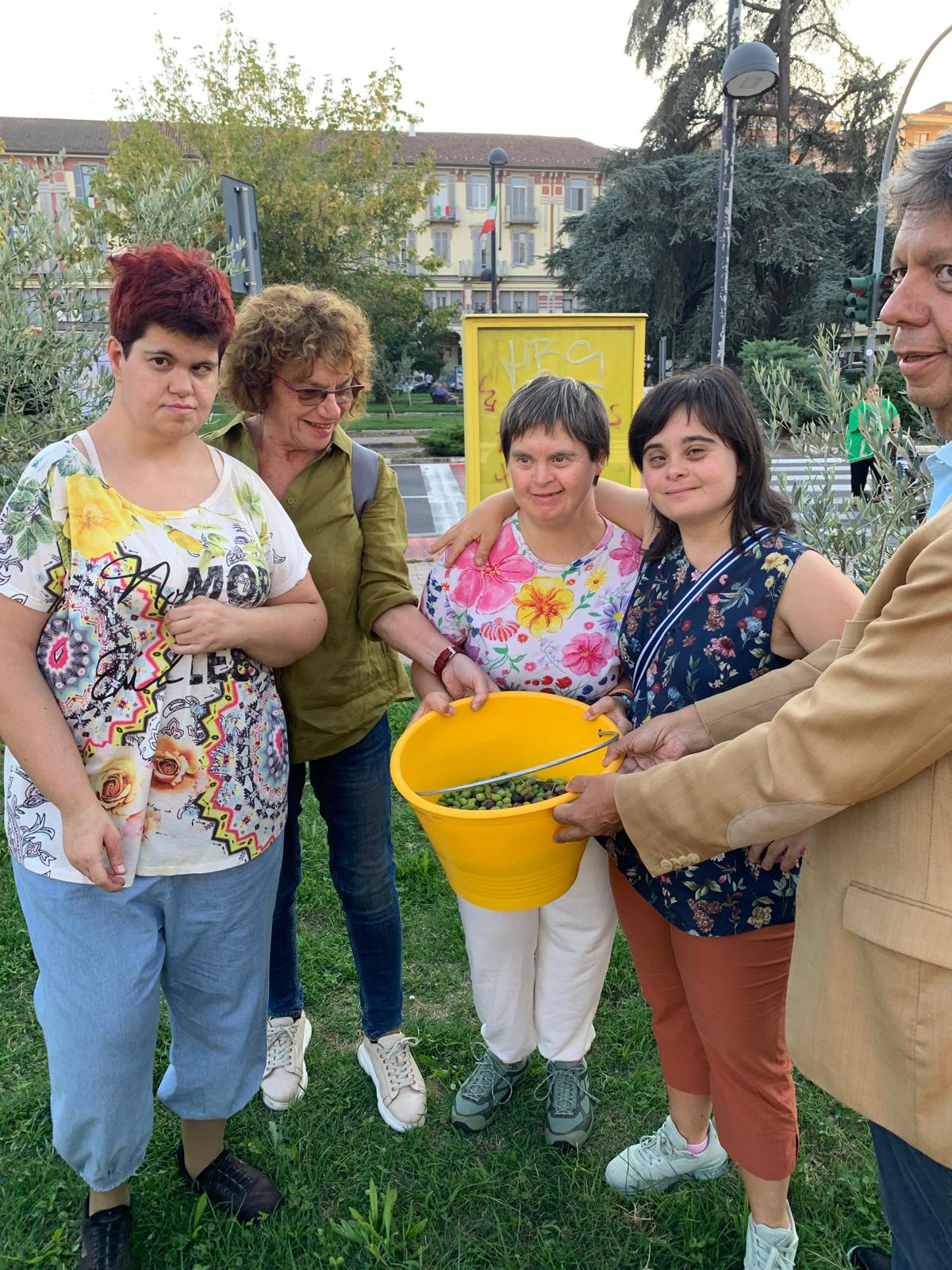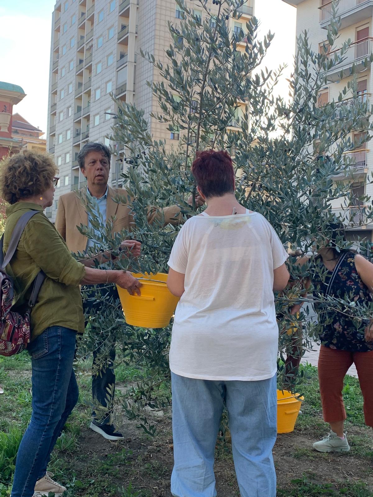 A due anni dall’impianto la prima raccolta ci ha donato circa 50 kg di olive, da cento alberi. Le operazioni di raccolta sono avvenute ad opera dei ragazzi del Centro Down di Alessandria, che sono intervenuti insieme con l’assessore comunale Gianni Ivaldi, e con loro alcuni cittadini, insieme al personale delle organizzazioni agricole Cia e Confagricoltura Donne. Eravamo in tanti perché è l’oliveto urbano della comunità.