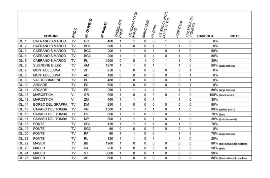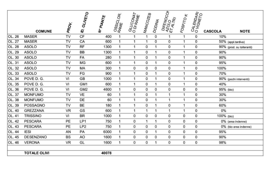Nella prima colonna il numero progressivo dell’oliveto monitorato.