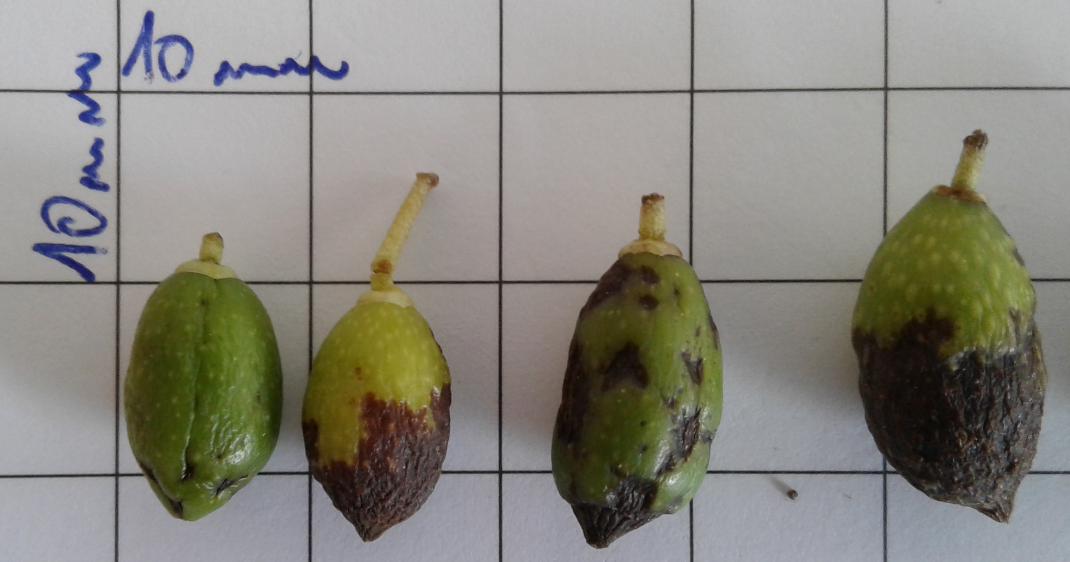 Resta comunque evidente la possibilità per il patogeno di permanere sulle drupe infette cadute a terra, potendo molto probabilmente, conservarsi sino alla stagione successiva.