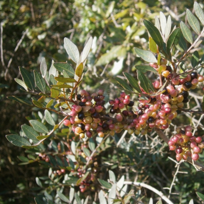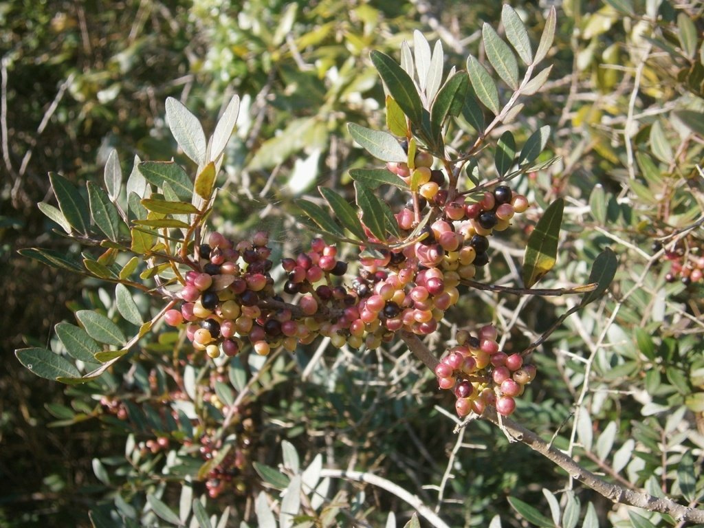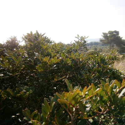 Colori e profumi della vegetazione mediterranea hanno il potere di suscitare emozioni complesse che restano impresse come marchio indelebile di un territorio, della sua cultura e della sua popolazione. Nelle giornate assolate di montaliana immobilità esplodono le variazioni del verde tra le note fragranti sprigionate da una vegetazione che, a tratti lussureggiante, stride con la calura e l’aridità solo apparente. Ed è qui che tra le eriche, i mirti, l’alloro, il corbezzolo, i cisti, il carrubo e il ginepro s’insinua il lentisco, un cespuglio sempreverde fittamente ramificato dall’intenso aroma balsamico e resinoso.