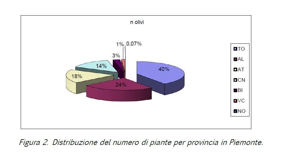 I dati che seguono sono frutto del mio lavoro che ho svolto in questi anni in quanto collaboratore della Facoltà di Agraria di Torino e dell’Asspo (Associazione Piemontese Olivicoltori). Un lavoro di censimento è stato svolto anche nel 2005/06 sempre da me e in questo report troverà interessante capire che il fenomeno è in forte crescita.