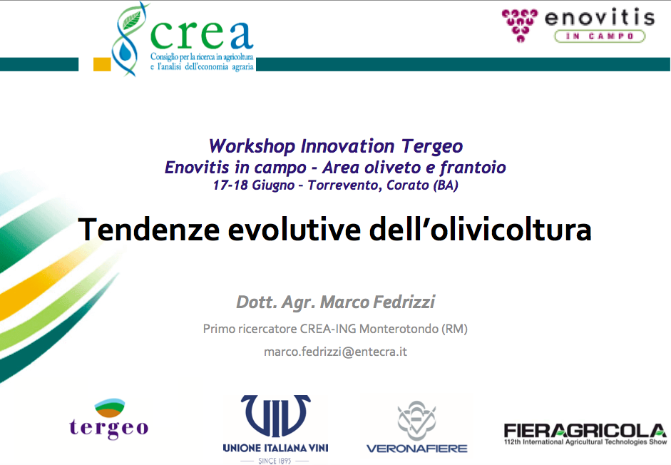 Così, dopo le relazioni di Giuseppe Mauro Ferro, Angelo Godini, Arturo Caponero, Giulio Sperandio e Massimo Occhinegro, ora è la volta dell’agronomo Marco Fedrizzi, primo ricercatore presso il Crea-Ing di Monterotondo.