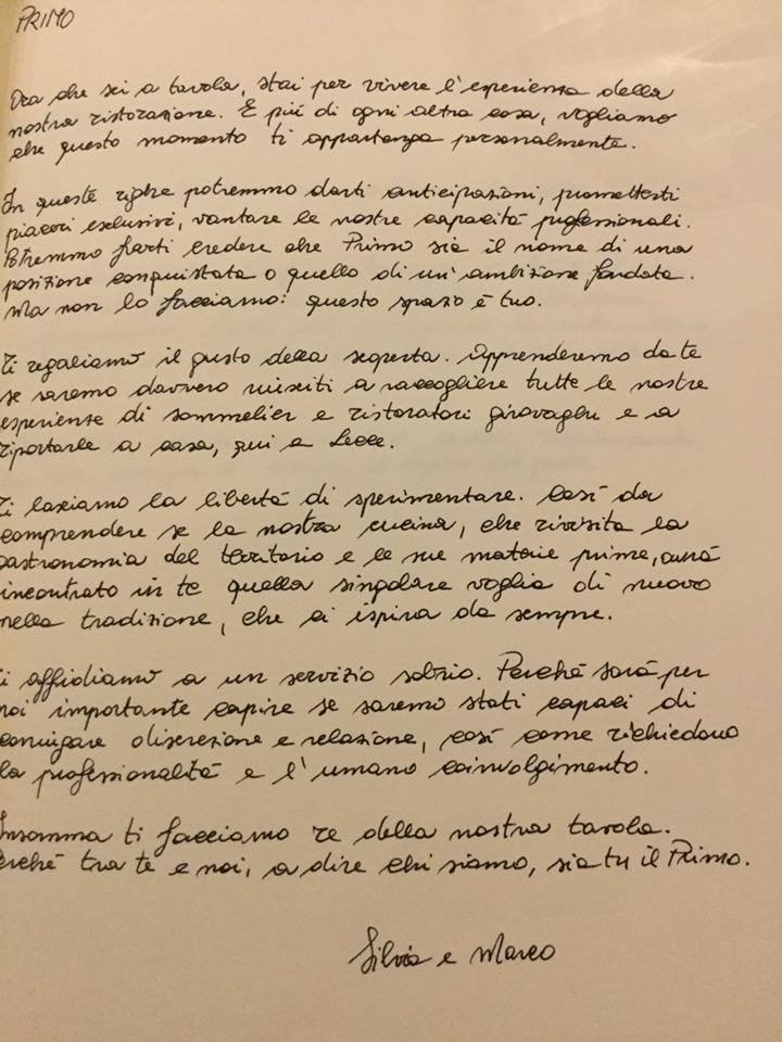 Quanto ai vini, la nostra scelta è caduta su un Negroamaro rosato di Severino Garofano, il Girofles 2015, che già conosciamo e apprezziamo. Abbiamo inoltre assaggiato e apprezzato un po’ di tutto. Ecco i piatti.