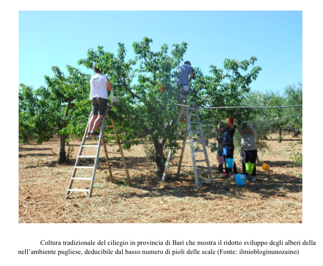 Ritengo utile ricordare al lettore che le provincie pugliesi di Bari e BAT (Barletta, Andria, Trani) insieme destinano oltre 17.000 ettari alla coltivazione del ciliegio. Quella parte di Puglia è la prima d’Italia quanto a produzione di ciliegie (circa 50.000 t) e ad incidenza (37 %) sul totale della produzione nazionale. Il successo della coltura in Puglia si è consolidato negli ultimi quarant’anni principalmente per la concomitanza di due felici fattori.