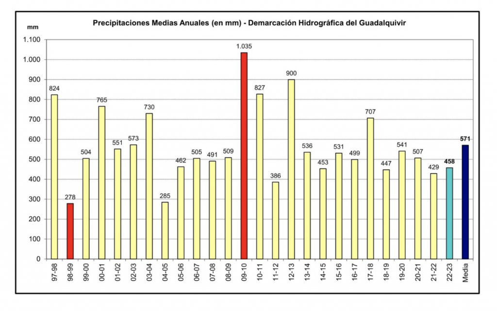 La media delle piogge per anno è di circa 571 litri e ad oggi, mancando evidentemente i soli mesi estivi e dell’esordio dell’autunno, si sono accumulati 500 litri, senza aspettative di grandi precipitazioni durante la assolata estate Andalusa.