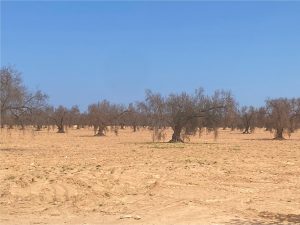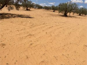 La zona più compromessa mi sembra quella di Sfax e una zona di un raggio di circa 30/40 chilometri a partire da questa città: un lungo periodo di mancanze di piogge ha davvero sottoposto a uno stress idrico le piante, come si può ben vedere dalle immagini.