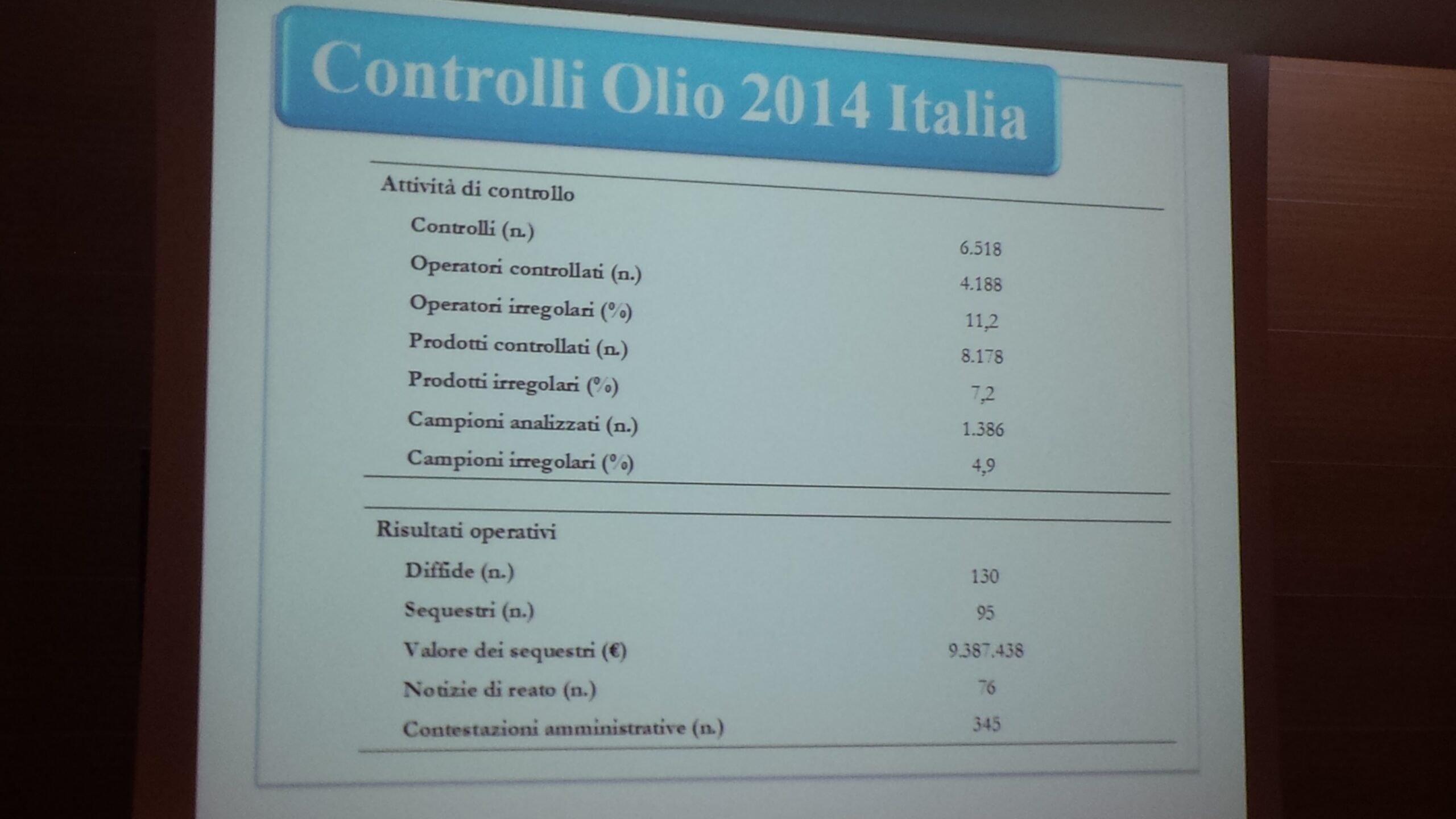 Il problema della tutela è strategico per combattere le frodi alimentari che penalizzano l’intero sistema “made in Italy”: si parla di 15 miliardi di euro per l’agroalimentare rispetto ai 60 totali legati a tutti i comparti. Lo sa bene l’Icqrf, l’Ispettorato Centrale per la Tutela della Qualità e di Repressione Frodi del Mipaaf, rappresentato nell’incontro a Verona da Gianluca Fregolent. Nel 2014 sono stati effettuati 6.518 controlli su 4.188 operatori e 8.178 prodotti da cui è risultata una percentuale dell’11,2% di operatori irregolari per un totale di 7,2% di prodotti non conformi. 95 i sequestri realizzati, per un valore di 9.387.438 euro. “Si è trattato di reati prevalentemente incentrati sulle commodity che non hanno presentato particolari rischi per la salute” ha precisato Fregolent. In ogni caso l’attenzione è molto alta su quello che, in gergo tecnico, viene chiamato “oro verde”.