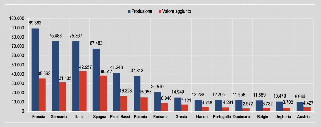 Per l’Italia prima posizione per valore aggiunto e terza posizione, molto prossima alla Germania (seconda) per valore della produzione nella Ue a 27.