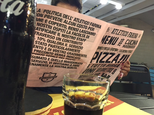 Quando il caffè incontrò il calcio, divenne bar sport. Quando il bar sport si trasforma in ristorante (pizzeria, american bar, piscina) non si chiama ristorante sport, ma Atletico Farina. C’è dell’ironia e c’è soprattutto dell’eleganza.