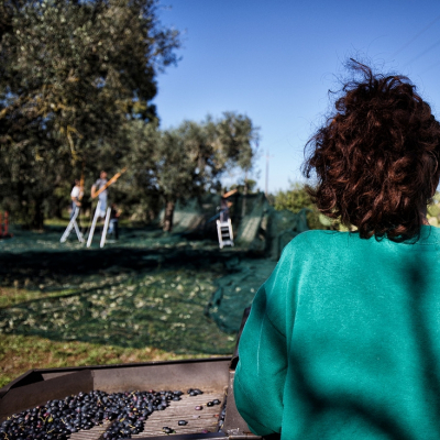 Abbiamo raccolto per un mese, imparando a usare gli abbacchiatori e a spostare le reti, toccando le olive invaiate e turgide poco prima che sprigionassero i loro profumi nella gramola, in attesa delle prime gocce di olio. Adesso raccontiamo quanto sia buono, prodotto con il sorriso sotto il sole tiepido di novembre e siamo ben felici di farlo degustare, con il suo sapore intenso e la sua carica di polifenoli”.