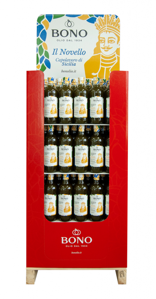 Per valorizzare e promuovere l’olio Novello, simbolo dell’inizio della nuova stagione olearia, l’azienda ha scelto di puntare su una visibilità speciale all’interno dei punti vendita. Grazie alla collaborazione con l’agenzia creativa Studio Irregolare, guidata da Sarah Bersani, sono stati realizzati dei palbox brandizzati dal forte impatto visivo, pensati per dare risalto a questa referenza esclusiva nei momenti chiave dell’anno.