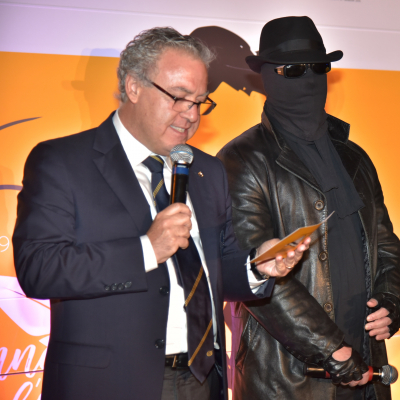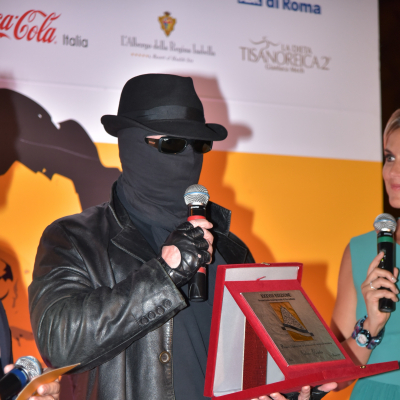 Valerio M. Visintin è arrivato alla sede della manifestazione, l’hotel della Regina Isabella di Lacco Ameno, con il volto completamente coperto, come di consueto. Per consentirgli di tenere il passamontagna per tutta la manifestazione, sono stati allertati il questore e le forze dell’ordine, in grande dispiegamento data la presenza del Ministro della difesa Roberta Pinotti, del Ministro dello sport Luca Lotti, del Presidente della regione Campania Vincenzo De Luca, del sindaco e di numerose autorità.