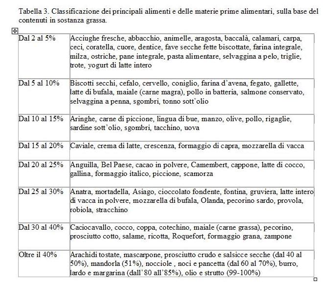 Quindi, la verità su prodotti, ritenuti grassi e non, deve essere ancora scritta e quando accadrà si potranno osservare grandi sorprese (Tabella 3, ad esempio).