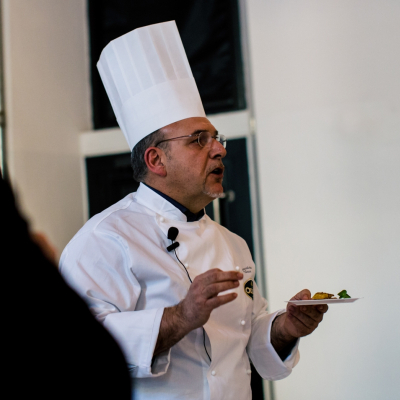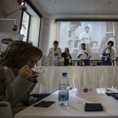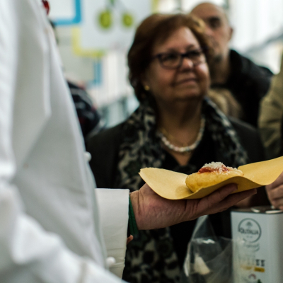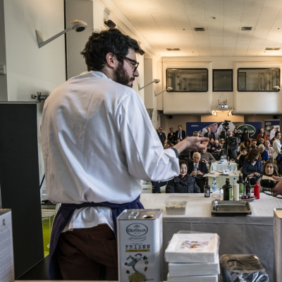 Un arancino ripieno di foglie di rape e patate. Una ricetta povera che racconta l’arte della cucina di recupero. Nel secondo giorno di Olio Officina Festival si sono accesi anche i fornelli dei cooking show. E’ dalla sala Bramante che provengono i profumi degli arancini e delle pizze fritte da Pasquale Torrente, della Cuopperia di Cetaro e del Mercato di San Lorenzo, e che si alternano alle delizie di altri quattro cuochi: Fabrizio Ferrari, Maurizio Urso, Massimiliano Mascia e Roberto Carcangiu. Cinque chef, in tutto, che si sono confrontati con gli oli e aceti balsamici di Olitalia e Acetaia Giuseppe Cremonini. Sono storie di uomini e di donne che si incrociano con i sapori sopraffini offerti al palato degli ospiti del festival, accompagnati in un viaggio sensoriale tra territori, aneddoti e le tante curiosità emerse dai racconti degli chef.