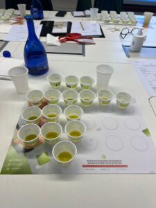 Nei due giorni intensi di formazione sono stati assaggiati oltre venti campioni di olio provenienti da tutto il mondo, sono stati analizzati diversi attributi negativi (difetti) e le caratteristiche organolettiche degli attributi positivi (flavour fruttato, amaro e piccante).